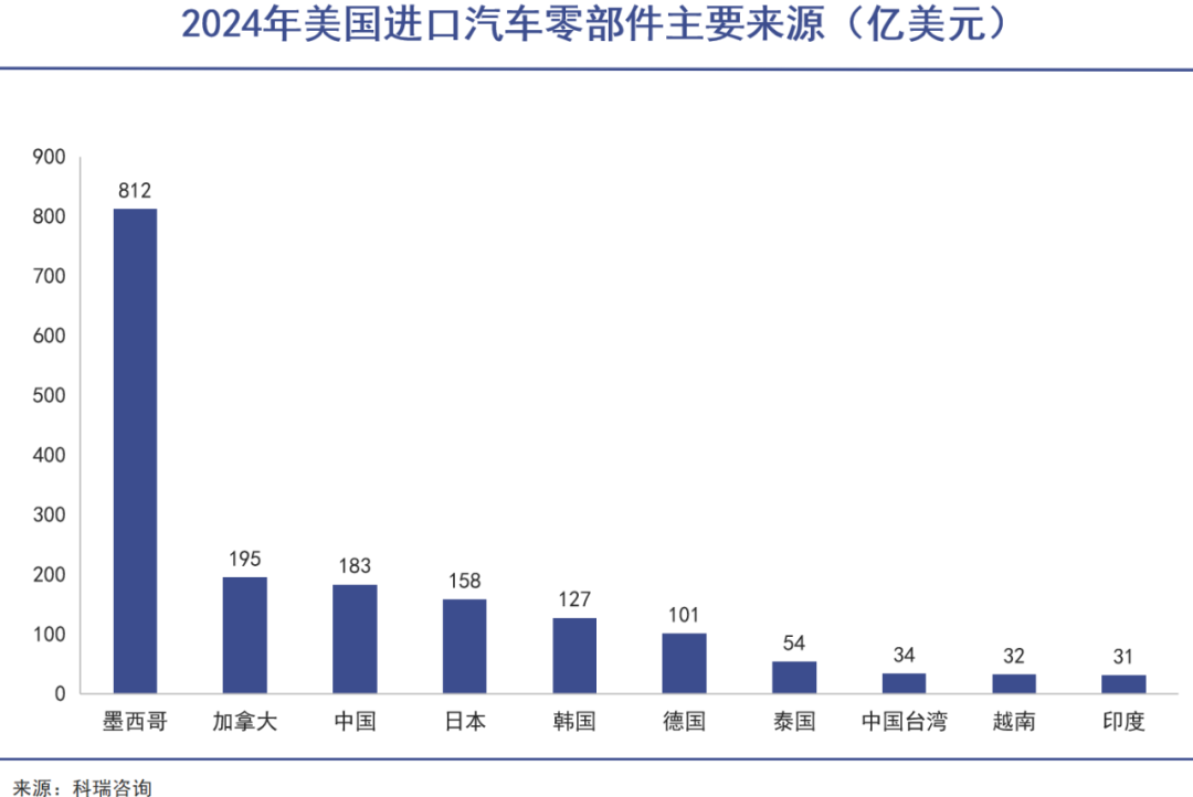 Today, approximately 60% of U.S. automotive components are imported, with major sources including Mexico, Canada, China, and Japan. Mexico accounts for over 40%, while China contributes about 11%.