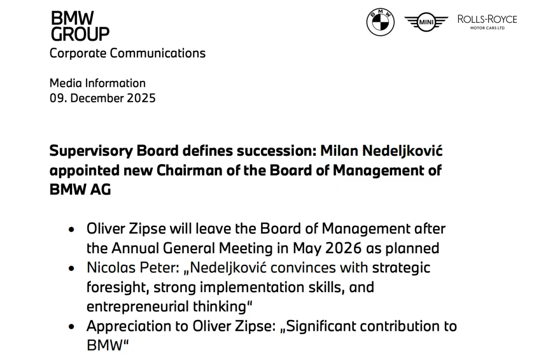 Dr. Milan Nedeljković, who will succeed Zipser, is also a veteran at BMW, having joined around the same time as Zipser and being younger.
