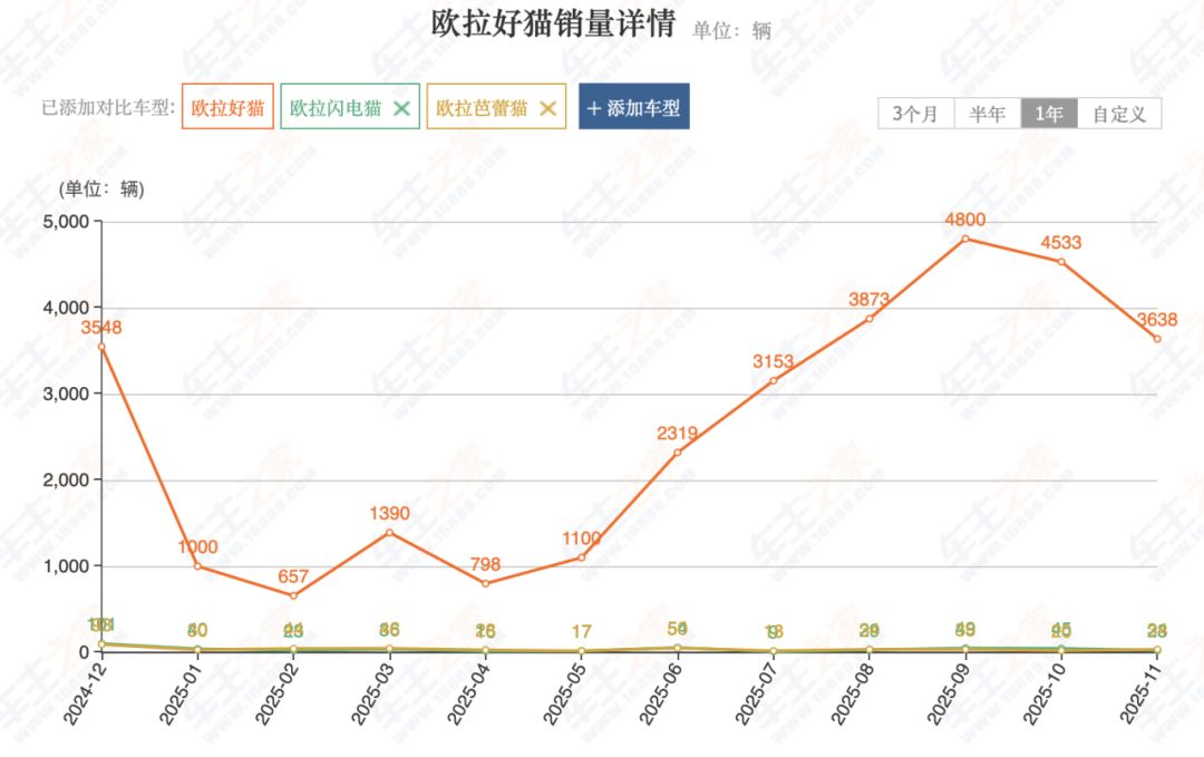 Of course, increased energy investment implies higher expectations. The reason Wei Jianjun is working so hard to support Ora is that the brand currently needs his heightened attention and stricter oversight. Data shows that in November 2025, Ora's sales volume was 4,821 units, a year-on-year decrease of 16.97%. In the first 11 months of this year, cumulative sales reached 40,155 units, a year-on-year decrease of 31.40%. Whether in terms of terminal sales or brand influence, the Ora brand urgently needs a turnaround.
