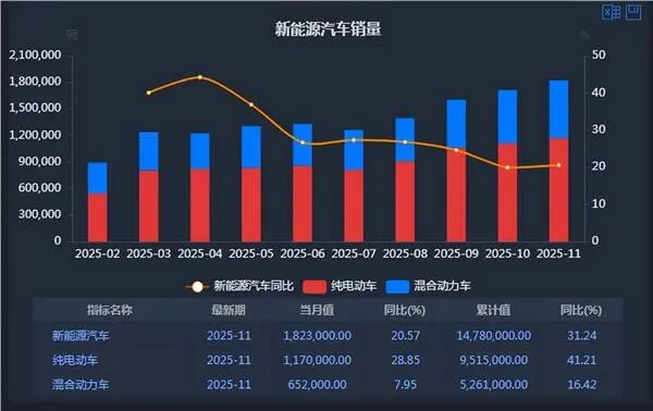 On December 23, Cui Dongshu, Secretary-General of the China Passenger Car Association, stated in an article that China exported 810,000 vehicles in November 2025, up 48% year-on-year and down 2% month-on-month; from January to November, China exported 7.33 million vehicles, up 25% year-on-year. In November 2025, China exported 350,000 new energy vehicles, up 156% year-on-year; from January to November, new energy vehicle exports reached 3.01 million units, up 62% year-on-year, performing better than expected.