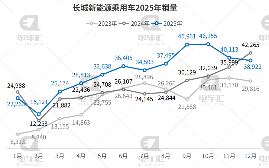 Great Wall Motors sold 38,922 new energy passenger vehicles in December, a 3.0% decrease from the previous month and a 7.9% decrease year-on-year. For the whole year, it sold a total of 403,653 units, a 25.4% increase year-on-year. The Tank 300 PHEV and Gaoshan MPV have become the main incremental models. The Hi4-T off-road hybrid technology has established a differentiated competitive advantage. Although there was a short-term fluctuation in sales at the end of the year, the long-term track barriers remain solid, with sustained and steady growth in annual sales.