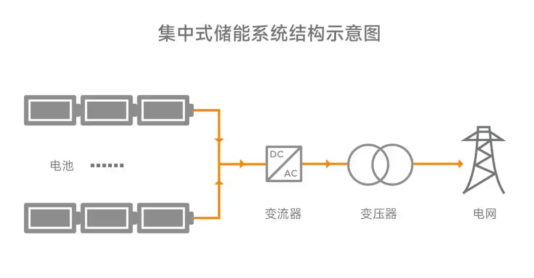 Centralized architecture is a commonly adopted solution for large-scale storage. Multiple battery packs are connected in parallel and managed uniformly by a centralized battery management system. Simultaneously, one or more PCSs are utilized to convert direct current into alternating current, which is then boosted by a transformer and connected to the grid.