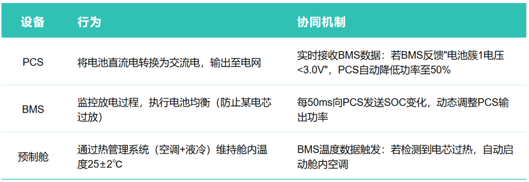 The local controller generates instructions: "Start PCS and discharge at 80% rated power."