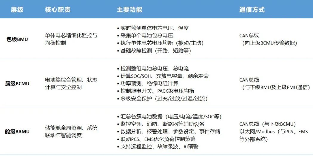 Given the large number of cells, containerized energy storage systems typically adopt a three-tier BMS management architecture: