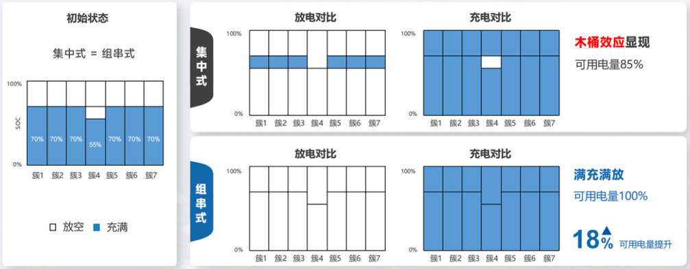 No Bucket Effect: Each battery cluster operates independently, and performance differences do not affect each other, increasing the system's available capacity by 5-10%.