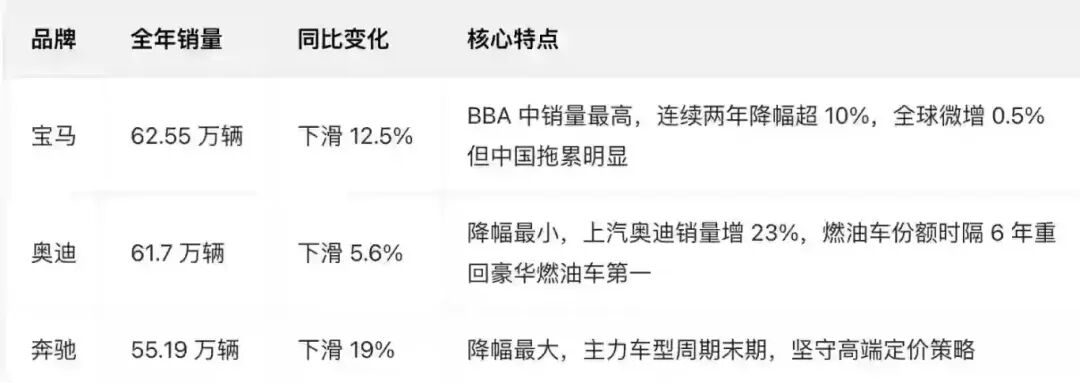 Additionally, in the luxury brand sector, the fuel vehicles of the German Big Three remain highly valuable. In 2025, the fuel vehicle sales of BBA (BMW, Benz, Audi) in China still accounted for over 70% of their total sales.