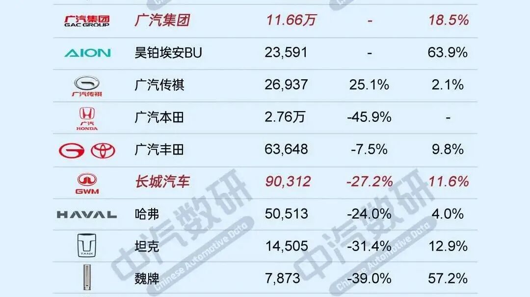 From a month-on-month perspective, automakers with declines between 0% and -50% include BYD Group (-30.11%), Chery Group (-18.2%), HarmonyOS Intelligent Mobility (-35.3%), Xiaomi Auto (-22%), Leapmotor (-46.9%), Li Auto (-7.55%), NIO Group (-38.5%), and XPeng (-34.07%).