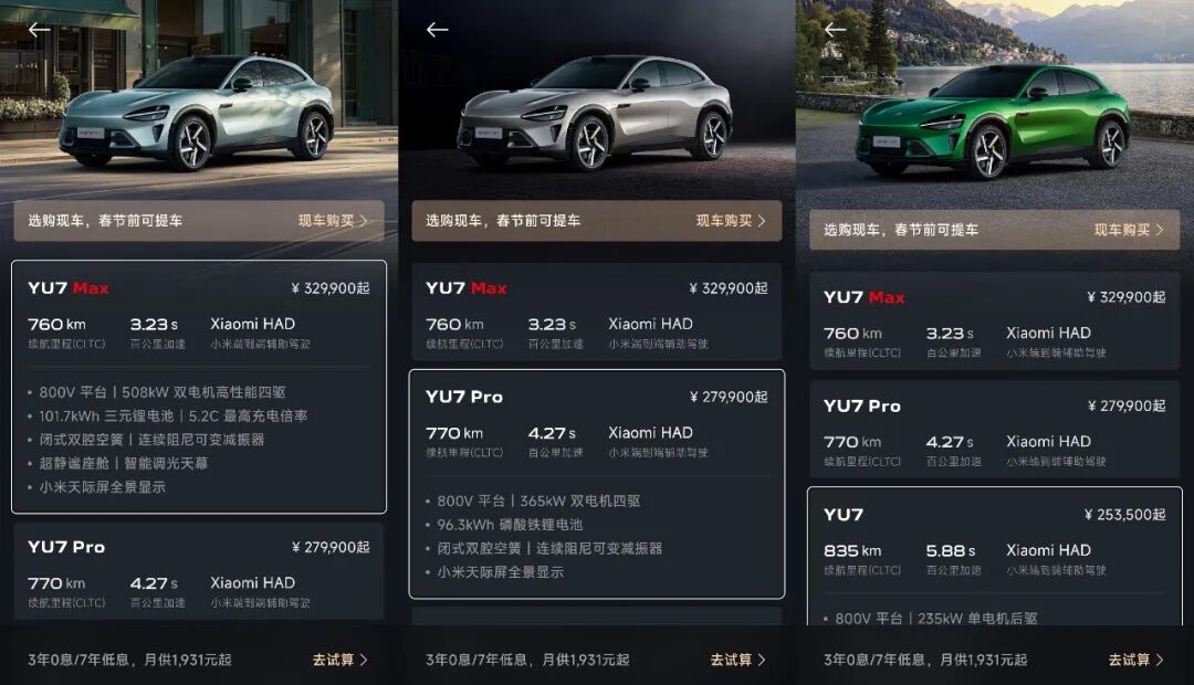 The YU7 now offers two purchase models: 'buying in-stock vehicles' and 'customizing new vehicles.'