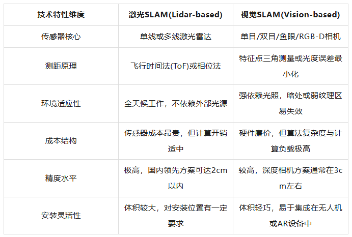 In the sensor suite for autonomous driving, LiDAR and cameras are the two core hardware components for constructing an SLAM system. LiDAR-based SLAM obtains high-precision 3D point clouds of the environment by emitting laser beams and receiving reflected signals. This data format possesses strong geometric authenticity, as each laser beam's returned angle and distance information constitute the hard scale for the vehicle to perceive the surrounding physical world. In contrast, visual SLAM more closely resembles human perception, utilizing monocular, stereo, or depth cameras to capture continuous image sequences. By analyzing the displacement of feature points between adjacent image frames, visual SLAM can infer the camera's motion trajectory. Although visual solutions are prone to failure in areas with extremely poor lighting or lacking environmental texture, their rich color and texture information provide the vehicle with semantic perception capabilities beyond pure geometric structures.