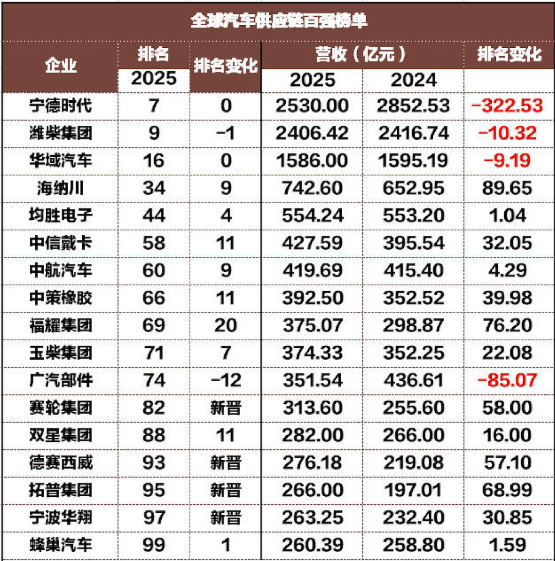 Currently, more than 10 Chinese auto parts enterprises have made it to the 2025 Global Auto Parts Suppliers Top 100 list, covering areas such as batteries, motors, and intelligent cockpits, breaking the monopoly of foreign auto parts enterprises. This perfect (well-established) supply chain system is difficult for European, American, Japanese, and South Korean automakers to replicate in the short term and is an important support for Chinese automobiles to iterate quickly and seize market share.