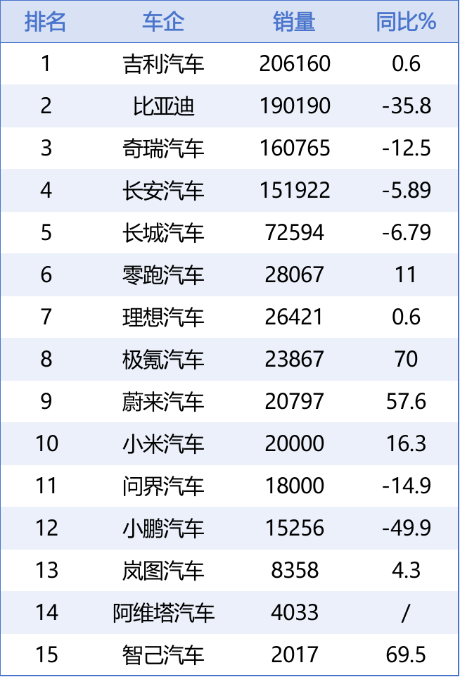 △Geely's sales volume surpassed BYD's for two consecutive months, claiming the top spot in domestic auto sales.