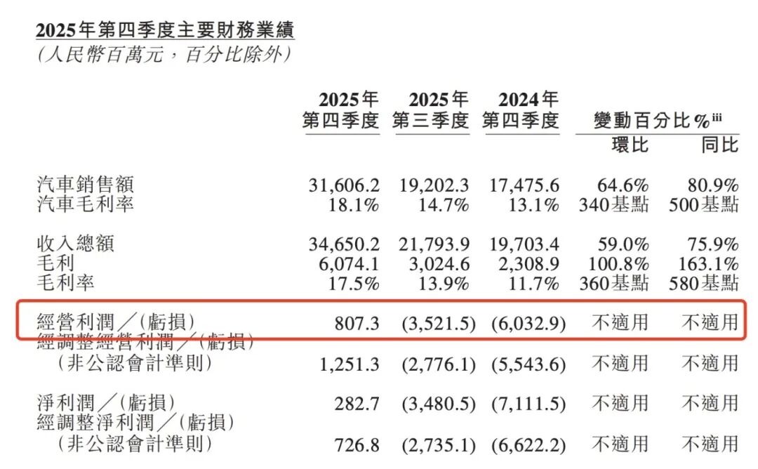 The earnings report showed that in the fourth quarter of 2025, NIO achieved an operating profit of RMB 807 million and a net profit of RMB 283 million—its first single-quarter profit in 11 years of operation.