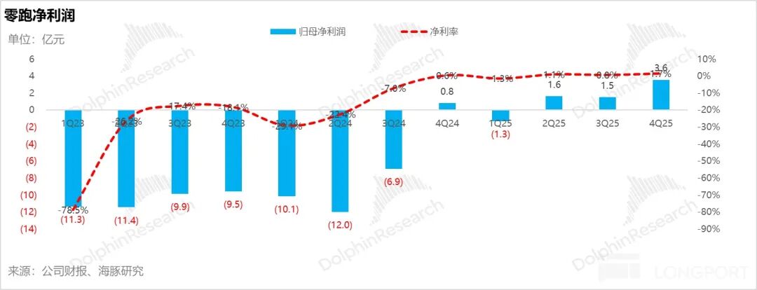 In Q4, Leapmotor's R&D expenses reached RMB 1.19 billion, down RMB 20 million quarter-over-quarter and below market expectations of RMB 1.26 billion. Despite a slight contraction in absolute investment, the company maintains high R&D efficiency, primarily focusing on new model development, deepening its self-developed system, intelligence advancements, and platform capability building: