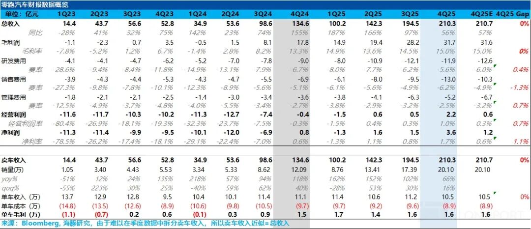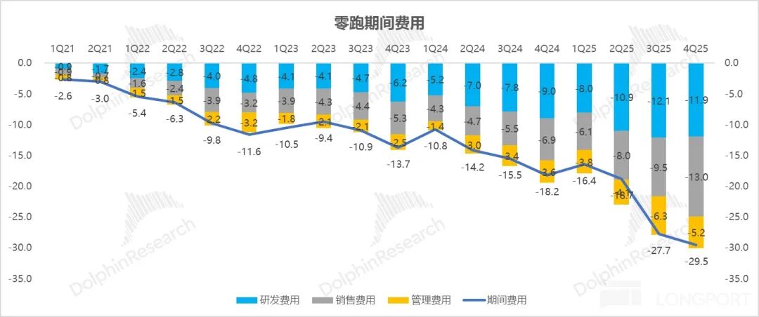 Leapmotor's Q4 sales expenses reached RMB 1.30 billion, significantly exceeding market expectations of RMB 1.03 billion and increasing by RMB 350 million quarter-over-quarter from Q3. The Exceeding expectations growth in expenses primarily stemmed from the company's efforts to support its aggressive global sales targets for 2026, including simultaneous domestic channel expansion, overseas network layout, and brand marketing investments.