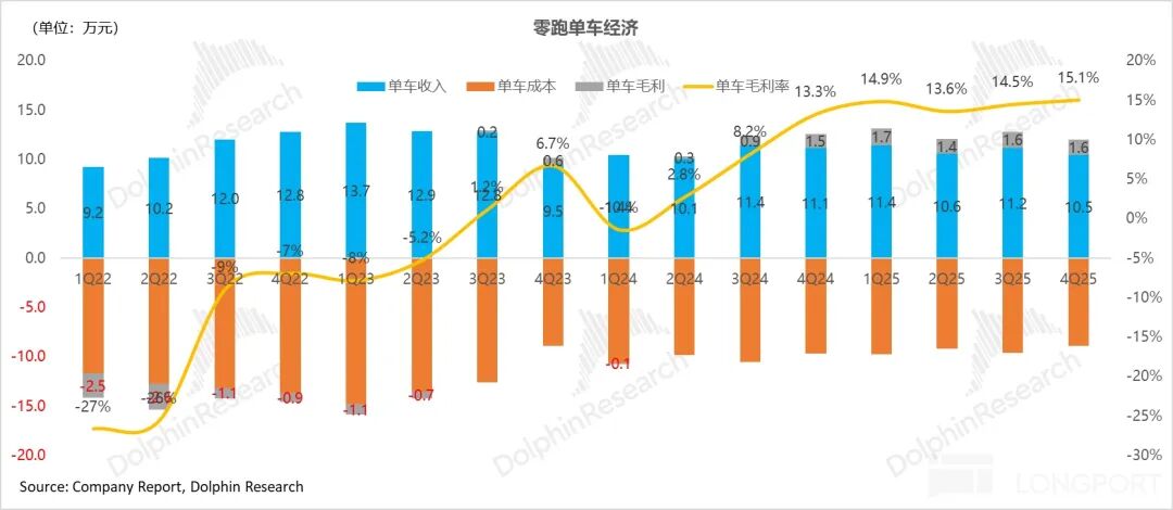 In Q4, the actual gross profit per vehicle remained at RMB 16,000, largely flat quarter-over-quarter. Although the average selling price continued to decline, Leapmotor's sustained cost reductions drove a slight 0.5 percentage point quarter-over-quarter increase in gross margin to 15%.
