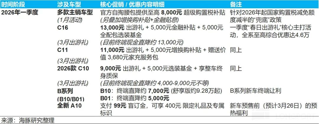 Additionally, while the new trade-in policy took effect on January 1, 2026, local government subsidy rollouts varied (e.g., Hubei on January 15, Jilin on January 17), causing some potential buyers to delay purchases. In response, the company increased promotional efforts and offered purchase tax support policies to boost Q1 sales.