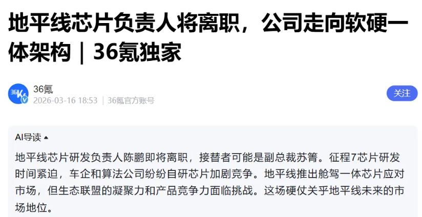 Zooming out, Chen Peng's departure appears to be part of a broader organizational restructuring at Horizon. Over the past two years, the company has repeatedly overhauled its internal systems.