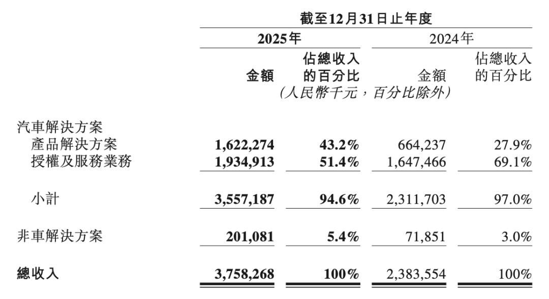 Changes in revenue structure within financial reports also corroborate this shift. In 2025, Horizon's product and solution revenue reached RMB 1.622 billion, up 144.2% year-on-year, with its share of total revenue rising from 27.9% in 2024 to 43.2%. Licensing and service revenue reached RMB 1.935 billion, up 17.4% year-on-year, accounting for 51.4%. These two business segments formed a relatively balanced revenue structure, enhancing risk resistance.