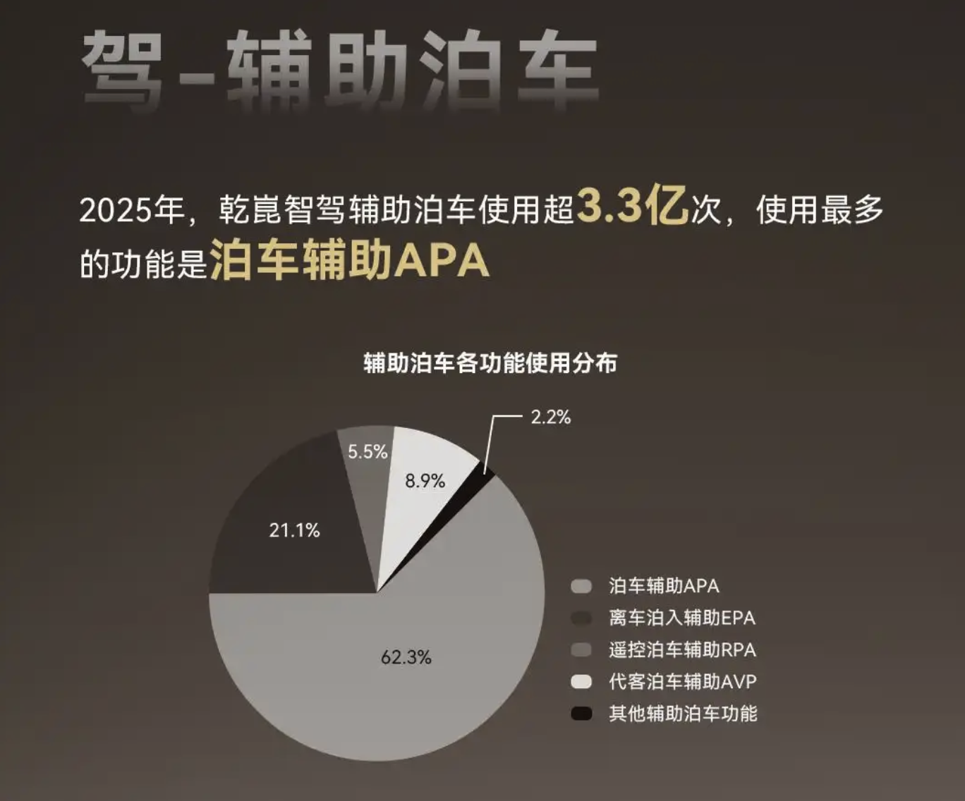 Huawei’s 2025 mobility report revealed over 330 million uses of its Qiankun smart driving-assisted parking system, with Automated Parking Assist (APA) accounting for 62.3%. More owners are embracing smart parking, suggesting it will become a standard feature in NEVs.