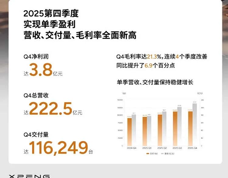 Li Auto's early profitability in 2023 was no longer a surprise. NIO also turned a profit in the fourth quarter of 2025, with a net profit of RMB 283 million. Xpeng's profitability report simply completed the final piece of the puzzle.