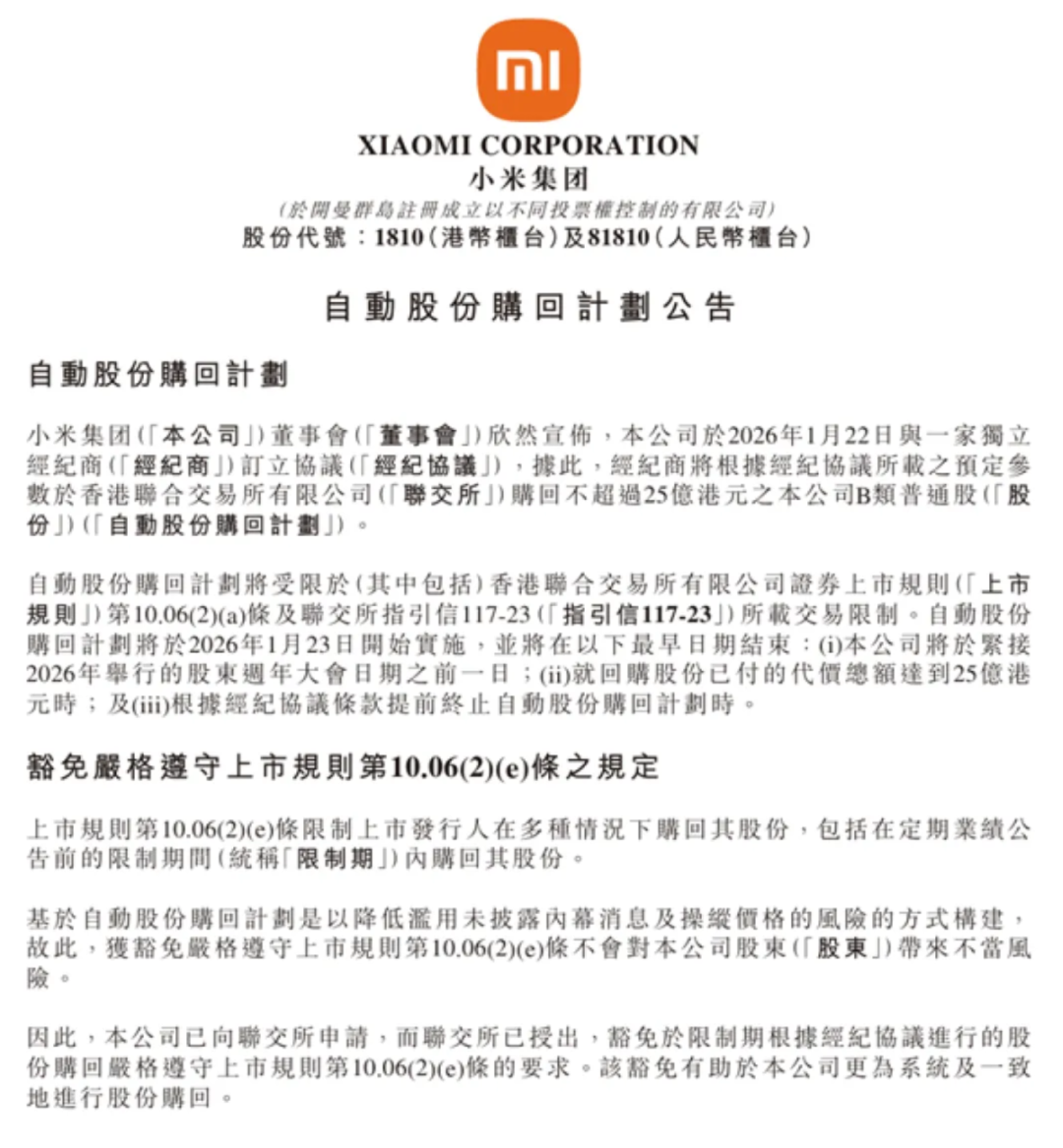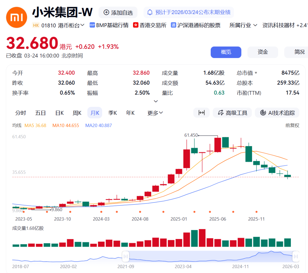 It remains to be seen whether Xiaomi Group's stock price can recover under the influence of the 2025 annual financial report.