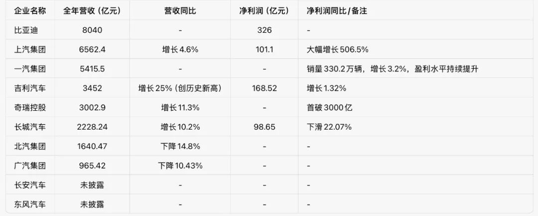 Performance of Domestic Mainstream Automakers in 2025 (Sorted by Revenue from Highest to Lowest as of April 2)