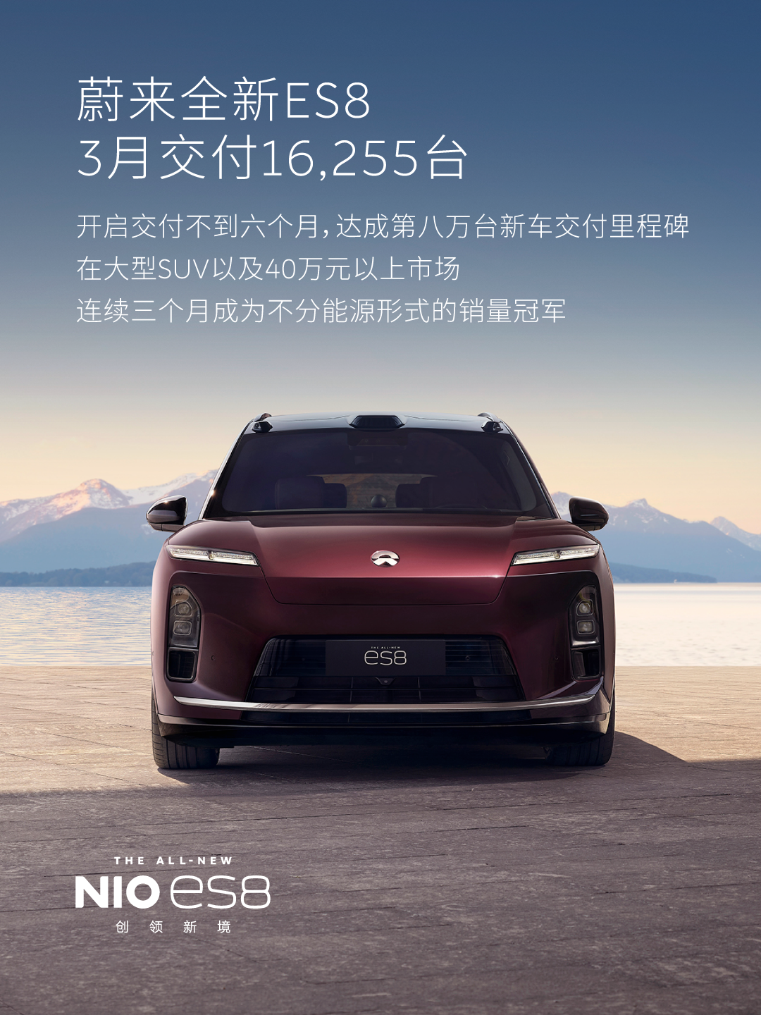 Official data reveals that 16,255 ES8 units were delivered in March, accounting for half of Nio's sales and cementing its status as a flagship model. This success indicates that Nio has found its comfort zone in the large battery electric SUV segment. According to online reports, the Nio ES9 is set to launch soon, further expanding its presence in this space.