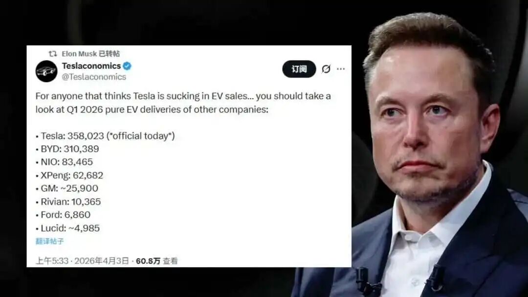 Interestingly, as the market interprets these data points as signs of Tesla's weakening position, Elon Musk disagrees. He shared a set of data on X comparing Q1 2026 delivery figures among major pure EV automakers.