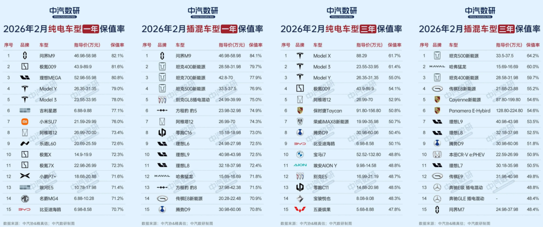 Additionally, the China Automotive Data Research Institute's February 2026 report on the residual value rates of new energy vehicles in China showed that among the top ten pure electric models for one-year residual value, NIO, XPENG, and LI Auto only occupied two spots, and for plug-in hybrid models, they also occupied two spots. For three-year residual value, they occupied zero and two spots, respectively. Their brand residual value is not significantly higher than other automakers.