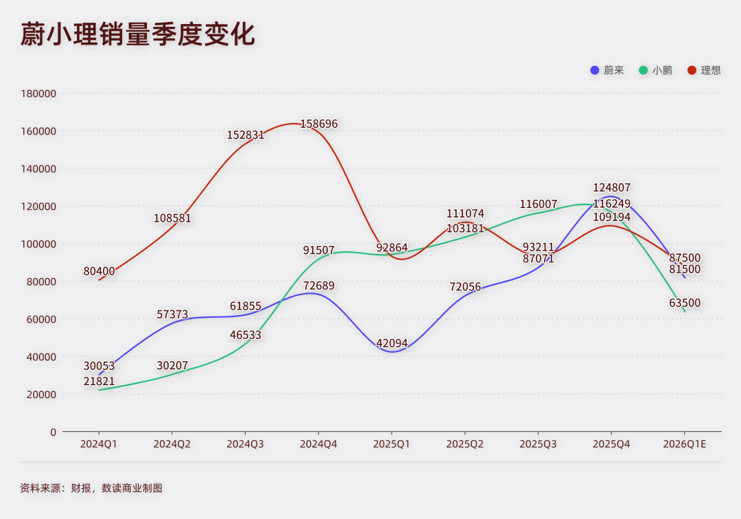 XPENG also continued to rise. Although its momentum weakened in the fourth quarter, its stable sales performance ultimately made it the highest-selling of the three in 2025.