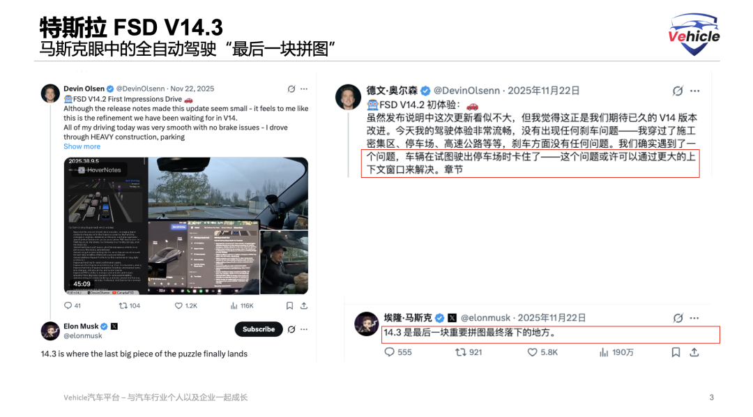 Combining firsthand driving experiences from multiple early testers on YouTube (such as Chuck Cook, Whole Mars Catalog, Dirty Tesla, Sawyer Merritt, Ananto, etc.) with feedback from professional tech media, FSD V14.3 demonstrates extremely high maturity in real-world testing. The underlying AI compiler reconstruction and 20% faster response speed deliver immediate and tangible effects in actual driving.