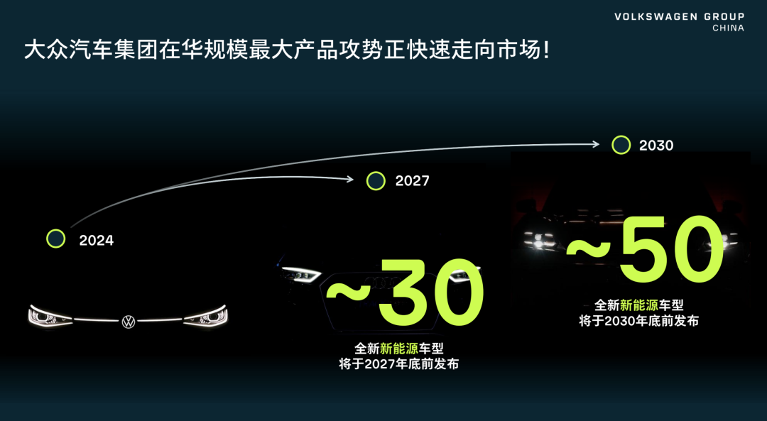 In 2026, multiple brands under Volkswagen Group will launch over 20 new energy vehicle models in the Chinese market. Specific models, as detailed in our previous article “2026 Beijing Auto Show: Key Product Technologies from Volkswagen,” will be showcased during this Beijing Auto Show. By 2027, approximately 30 models; by 2030, around 50 models.