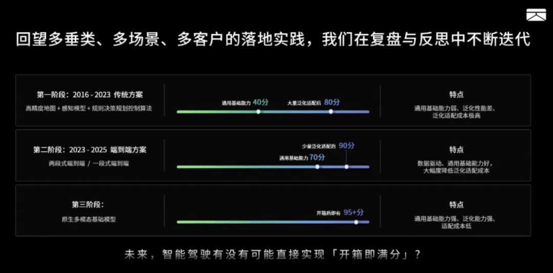 He boldly predicts that over the next two years, the global intelligent driving industry will gradually move away from its current fragmented, region-specific delivery models due to advancements in core technologies and fully embrace foundational models to achieve unification. "To add another bold prediction: intelligent driving is merely the most initial form of physical AI, not the final destination. Even companies like ours that survive in the future will transition into mobile physical AI companies," Shen stated, emphasizing that this is not a strategic judgment but a survival instinct.