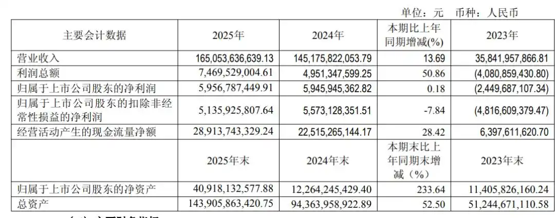 According to the financial report data, Seres' full-year revenue in 2025 was 165.05 billion yuan, a year-on-year increase of 13.7%, which appears robust (robust) at first glance but actually represents a significant slowdown—in 2024, this figure was 305.04%. Meanwhile, net profit was 5.957 billion yuan, a year-on-year increase of just 0.18%, nearly stagnant. Net profit excluding non-recurring items even declined by 7.84% to 5.136 billion yuan.