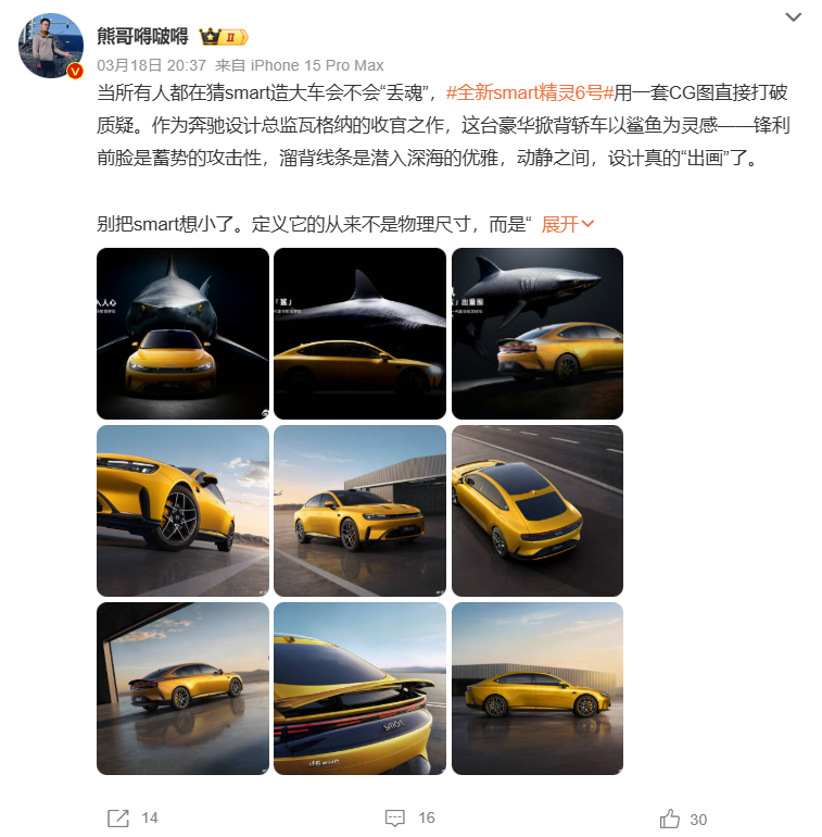 In the motor era, large vehicles are no longer a burden but a symbol of efficiency and the foundation for higher gross margins. Even smart, known for its preference for small-sized models, has released CG images of larger vehicles, sparking widespread sharing among bloggers.