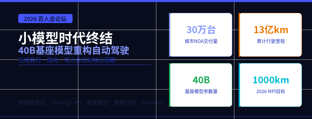 At the 2026 China EV100 Forum, DeepRoute.ai CEO Zhou Guang declared: The sole solution to this problem lies in transitioning autonomous driving from the small model era to the large model era, leveraging a 40B-parameter foundation model to overhaul the entire architecture. This shift represents not merely an iteration but a paradigm revolution.