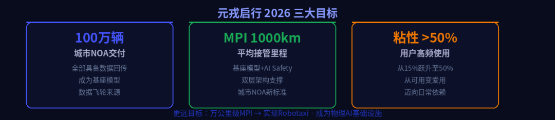 ④ Three Quantitative Goals: 1 million deployments + MPI 1000km + 50% user engagement, with results to materialize in 2026.