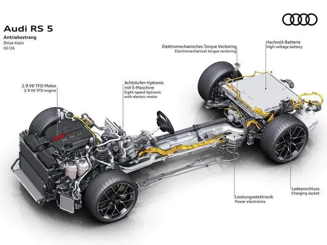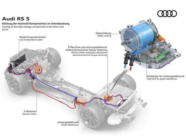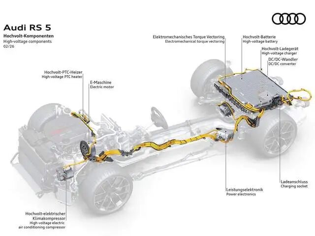 After undergoing electrification transformation, the current Audi RS 5 series indeed showcases more prominent overall performance, not only in terms of power reserves and response brought by electric motor drive but also by further reinforcing the traction control of the traditional quattro all-wheel-drive system through rear-axle vector electric drive.