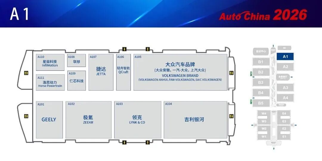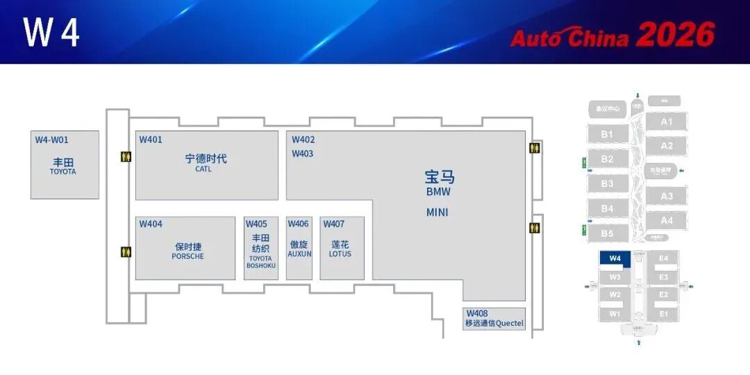 This edition's exhibition layout undergoes major reform, most notably with core suppliers entering the main hall at scale for the first time, co-exhibiting with automakers. CATL shares Hall W4 with luxury brands like BMW, Porsche, and Lotus; WeRide, Horizon Robotics, and iFLYTEK exhibit alongside Toyota and Changan in Hall B3. The components exhibition zone upgrades from past themes like 'automotive parts, electronics, and NEV/intelligent connectivity' to a new tech zone focused on 'electrification, intelligence, and connectivity.'