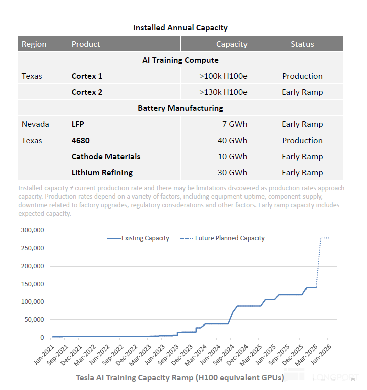 In terms of AI computing power construction, the Cortex 2 training cluster is now online and has started running workloads. According to the company's plans, to support the training of Optimus and autonomous driving models, computing power investment will continue to increase significantly. According to Tesla's plans, the cortex training cluster is expected to reach a computing power level exceeding 250,000 equivalent H100s in the second quarter, doubling from nearly 150,000 in the first quarter.