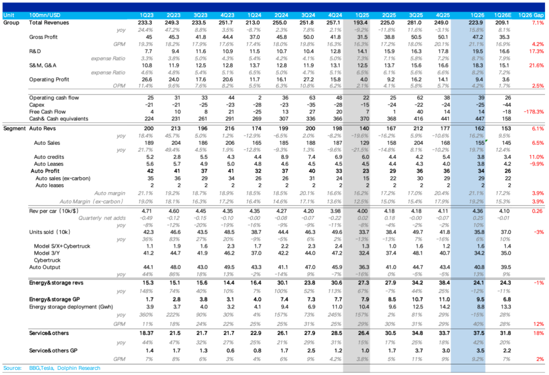 Ultimately, despite the hindered release of scale effects and rising per-unit costs due to raw material price increases, benefiting from the sequential increase in per-unit selling prices of vehicles sold, the automotive sales gross margin in Q1, after excluding one-time factors and regulatory credits, was 17.5%, still higher than market expectations of 14.7%-15.3%.