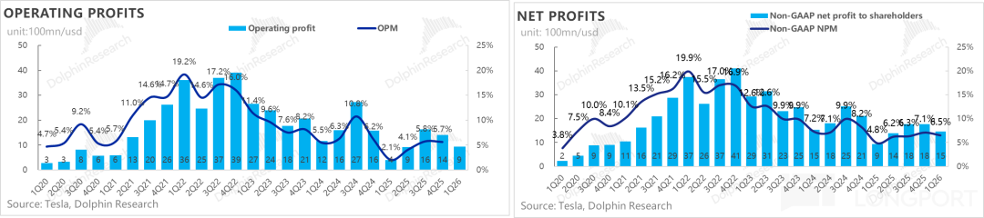The gross margin in Q4 was 21.1%, significantly higher than market expectations of 16.9%, primarily due to much stronger-than-expected gross margins from vehicle sales and energy storage business. However, after removing one-time impacts, the actual gross margin for the quarter was 18.7%, down 1.4 percentage points from the previous quarter's high of 20.1%, but still higher than market expectations.