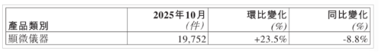 In the realm of optical instruments, in October 2025, the shipment volume of microscopic instruments was approximately 19,800 units, an 8.8% decrease year-on-year.