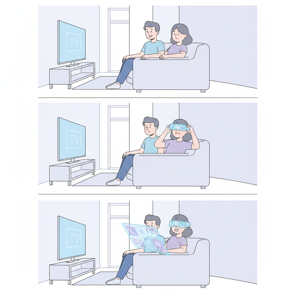 Marketing Scenarios for Display Glasses on the Market: Two Individuals Consuming Different Video Content in the Same Space