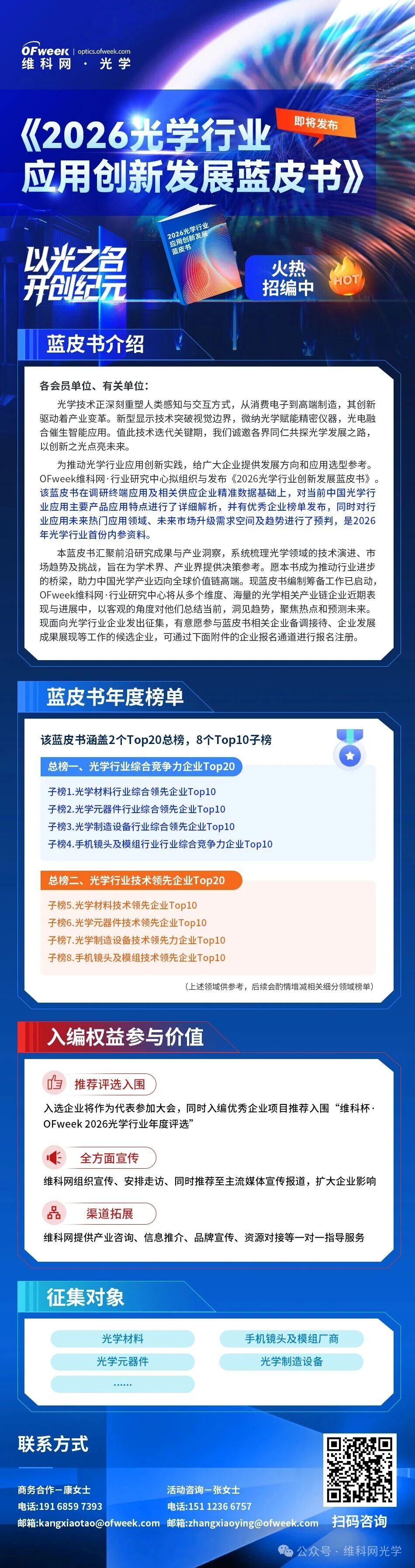 To spur innovation in optical industry applications and offer enterprises valuable insights into development directions and application choices, the OFweek Industry Research Center is set to organize and publish the 2026 Blue Book on Innovation and Development in Optical Industry Applications.