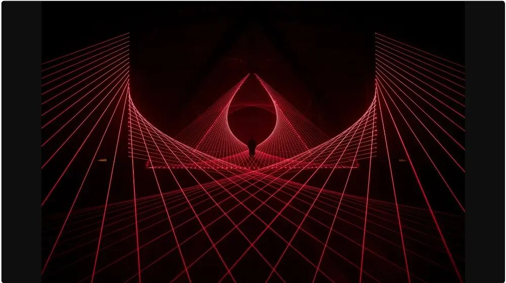 If stage lasers demonstrate that lasers can 'draw lines,' Matthew Schreiber's works showcase that lasers can 'shape forms.' In the spaces he creates, viewers are no longer standing outside the light but directly entering geometric structures composed of light—as if an optical laboratory has been enlarged a hundredfold, immersing people within it. Schreiber's works typically take place in completely dark exhibition halls, with only a few dozen low-power lasers traversing the air. These beams are not randomly placed but are precisely calculated, combined with mirrors, refractors, and spatial sequences, allowing the light to form visible 'wireframes' in the air. In his works Leviathan (2018) and Gemini (2018), he makes light appear as both 'lines' and 'surfaces.'