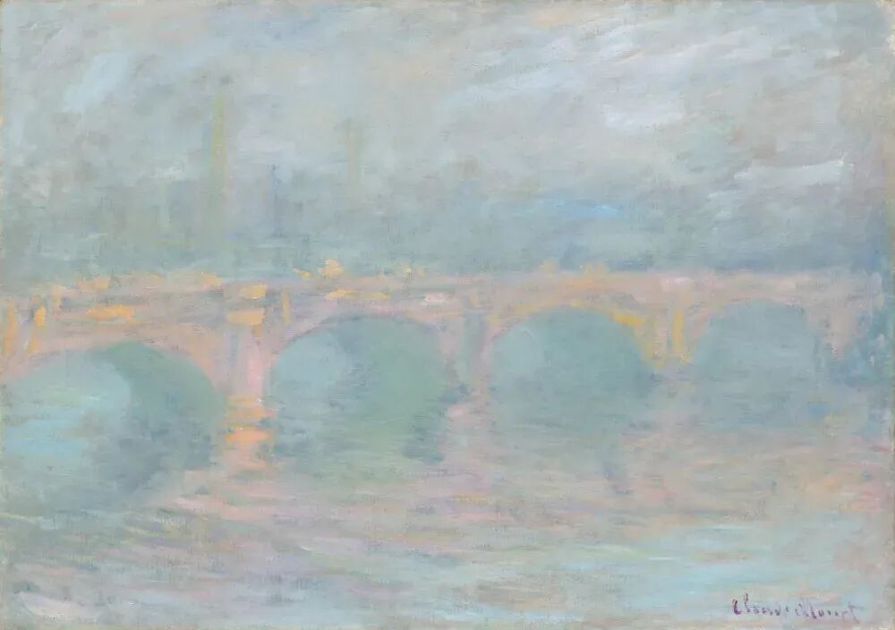 Air molecules are very small and are particularly prone to deflecting short-wavelength light, which is what we call blue light. When we look at distant scenery, this blue light is scattered in large quantities in the air, entering the eyes from all directions, while the light from the scenery itself decreases after traveling through a long distance of air. Therefore, the farther the object, the more likely it is to appear blue, gray-blue, or light purple. This is why distant mountains often appear 'blue' and why in Monet's 'Waterloo Bridge, London, at Sunset,' the bridge in the London fog seems to dissolve into the blue-purple air. A bridge that is clearly solid and distinct becomes soft and hazy in the painting because Monet depicted the light 'filtered' by the air, not the bridge itself.