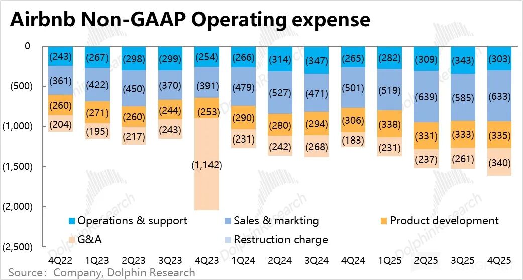 4. Significant expense growth, with revenue increasing but profits stagnant: Another issue for Airbnb is the management's repeated claims that increased investment in new businesses has led to rising expenses and shrinking profit margins. Total expenses surged by nearly 25% year-over-year this quarter, accelerating significantly from the typical growth rate of just over 10% in the first three quarters of 2025.