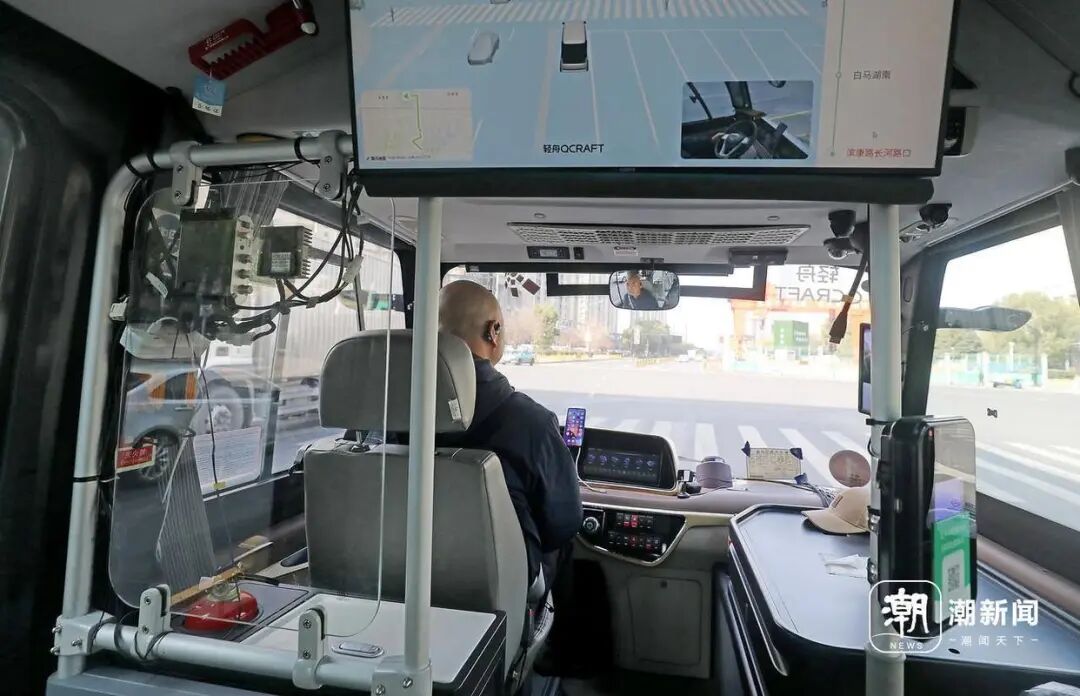Passengers board the autonomous minibus, greeted warmly by Safety Officer Gong: 'We haven't been in formal operation for long, but we've already had quite a few riders.'
