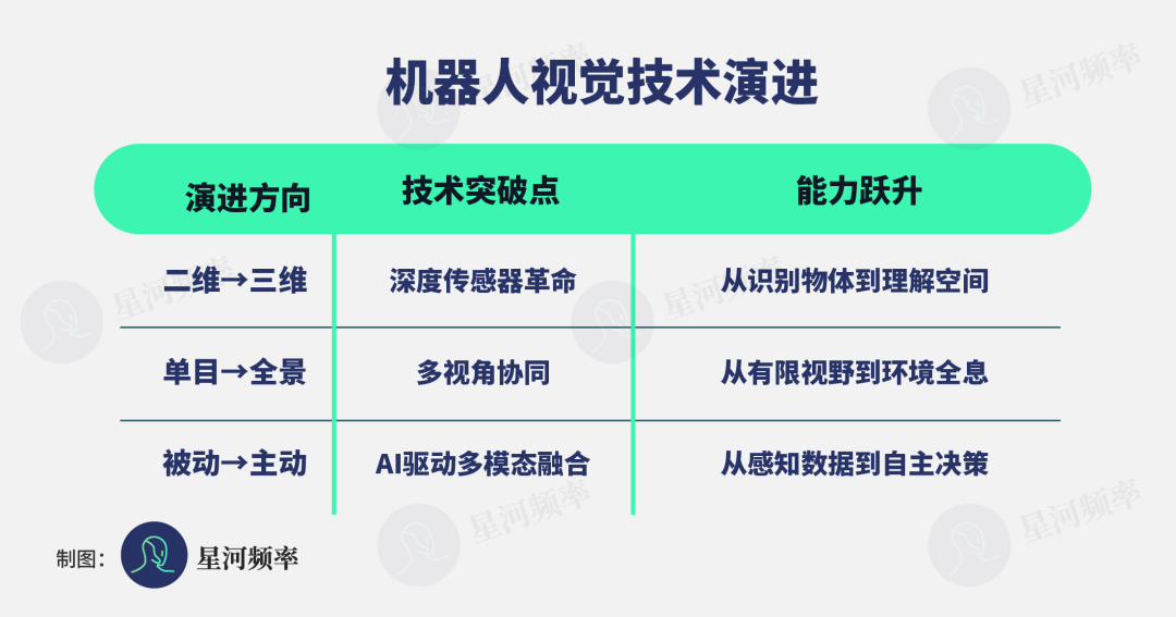 To better meet these needs, robot vision technology has evolved from two-dimensional to three-dimensional, from monocular to multi-ocular, and from passive to active perception.